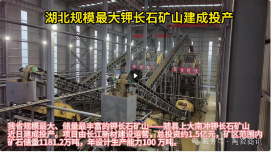 据《湖北日报》11月13日消息,我省规模最大、储量最丰富的钾长石矿山——随县上大南冲钾长石矿山近日建成投产。这对湖北陶瓷企业是一个好消息。