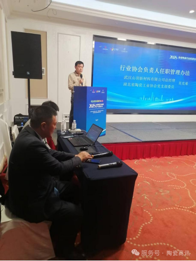 11月7日,2025年湖北省陶瓷行业新质生产力发展大会在武汉欧亚会展国际酒店召开,会上省陶协党支部组织委员吴克难传达了省委社会工作部新出台的《行业协会负责任职管理办法》。